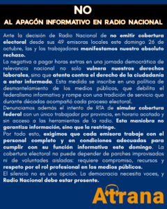 ATRANA, el sindicato de la y los trabajadores de Radio Nacional, expresa su más enérgico repudio a las políticas de...