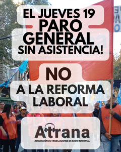 ATRANA, el sindicato de la y los trabajadores de Radio Nacional, expresa su más enérgico repudio a las políticas de...